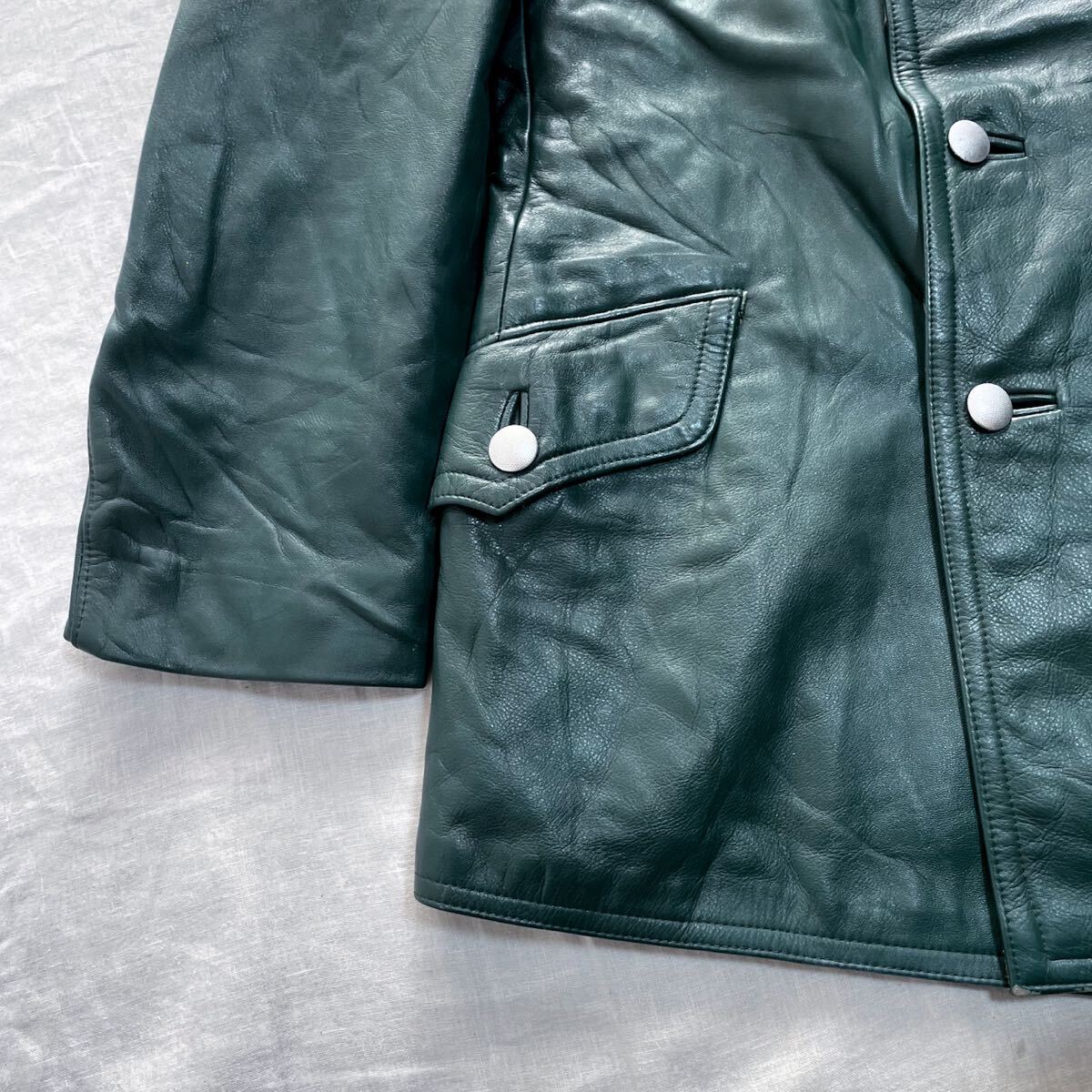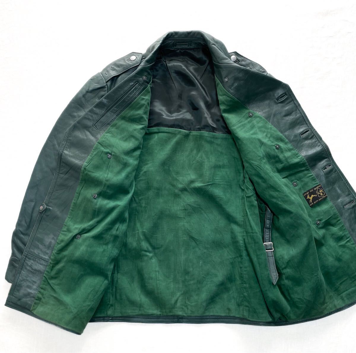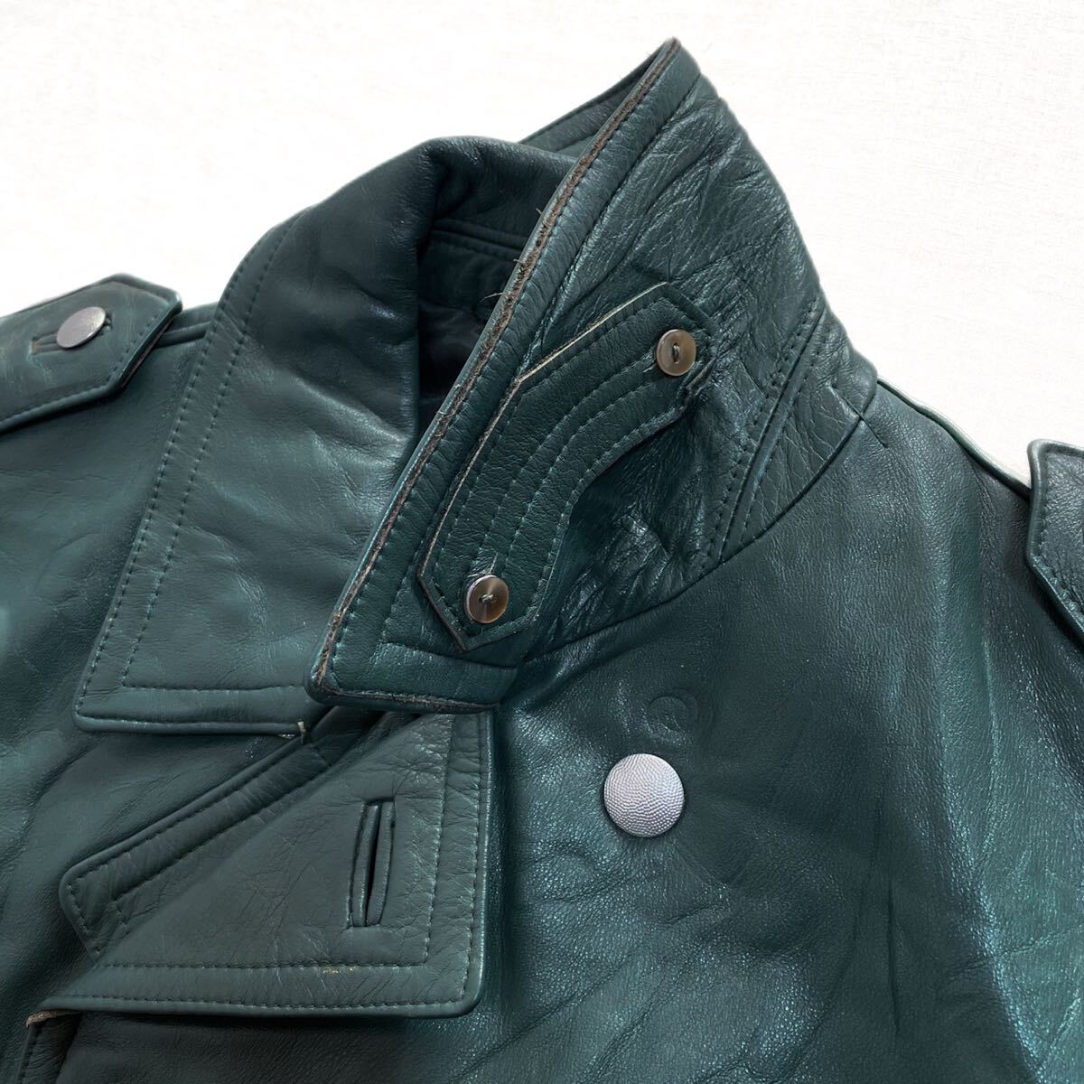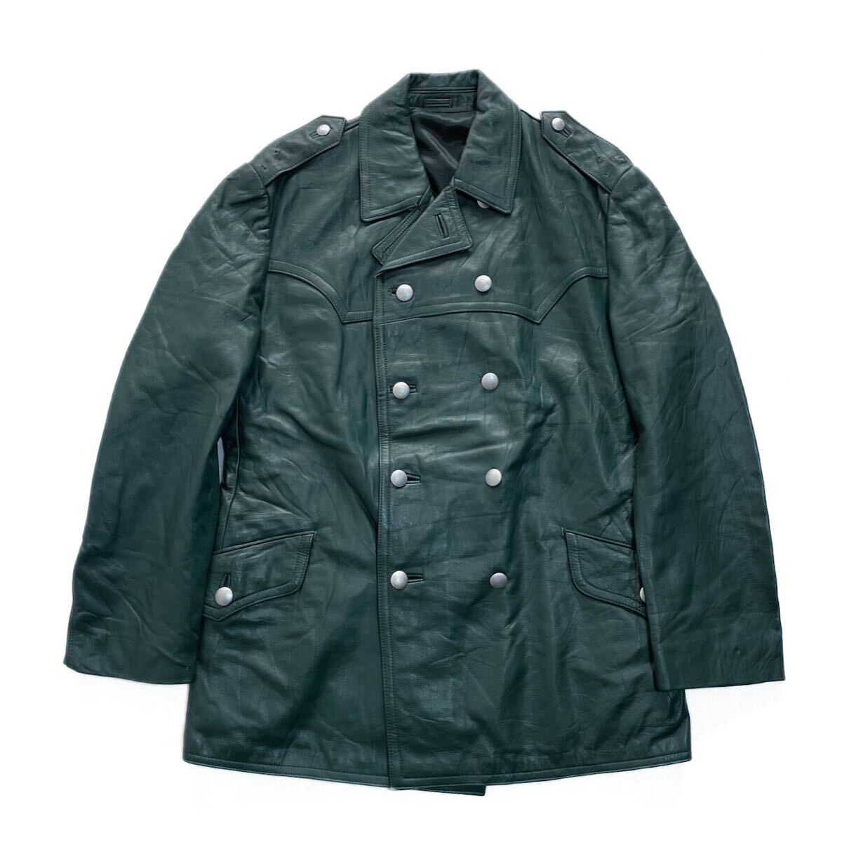> 60s ドイツ軍 実用 レザー コート グリーン ミリタリー ライダース ヴィンテージ カーコート フランス軍 ナチス 旧車 単車