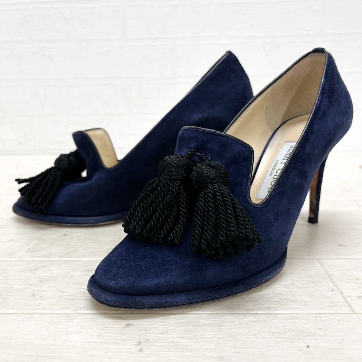 > K8★ JIMMY CHOO ジミーチュウ パンプス ヒール スエードレザー シューズ イタリア製 37 ネイビー レディース タッセル