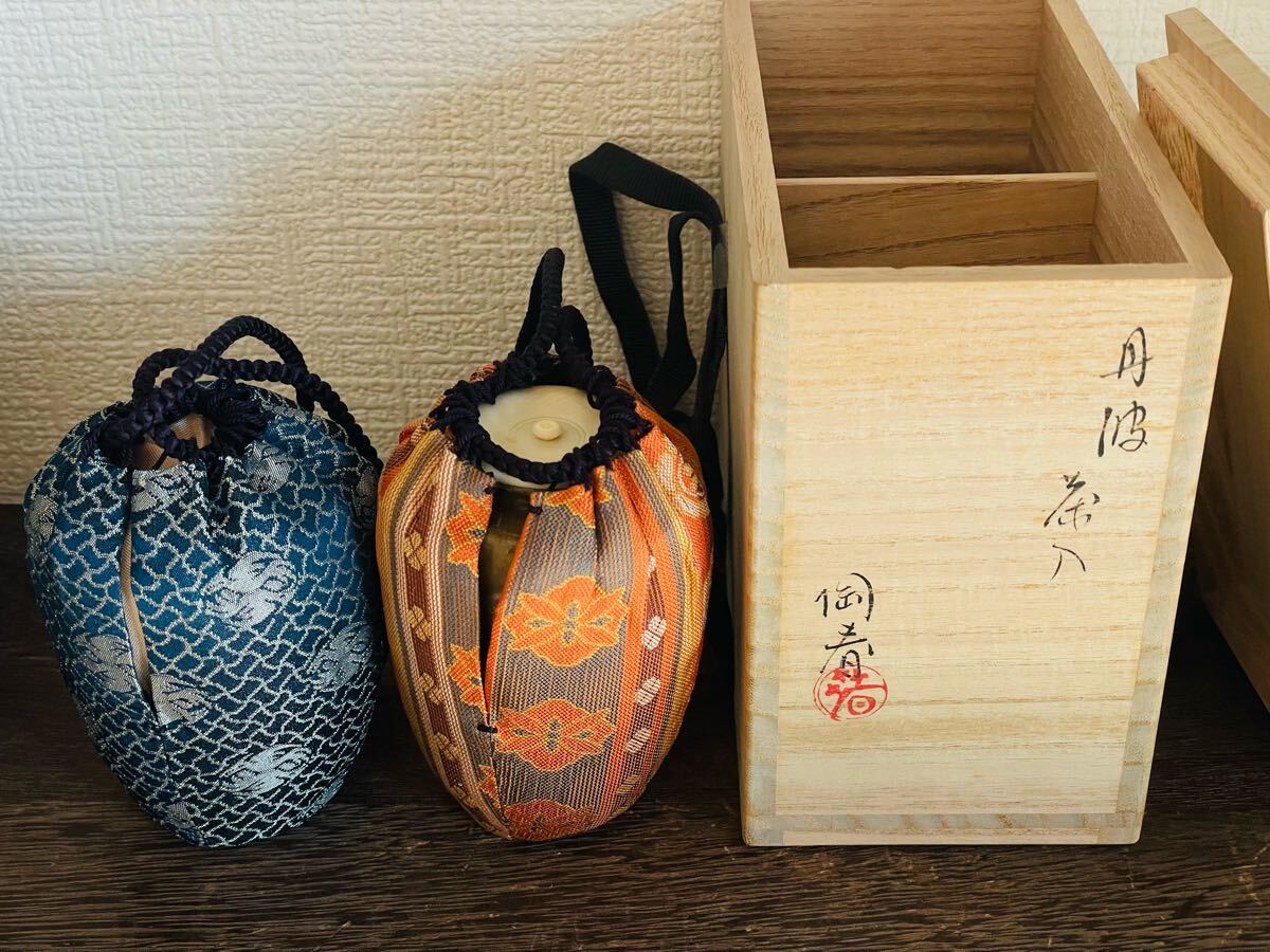 - 未使用 美品 石田陶春 丹波茶入 茶道具 肩衝茶入 仕覆 正倉院花文暈繝錦 西陣織 長期保管品