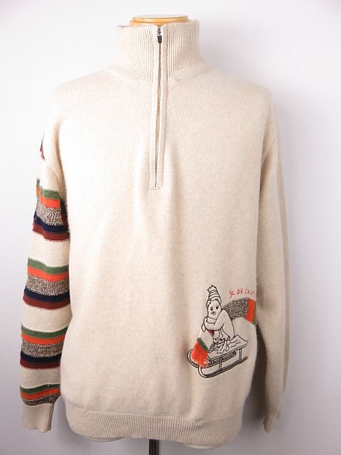 - 【送料無料】カステルバジャック ハーフジップアップ ニットセーター 両面豪華刺繍 ベージュ 4/M