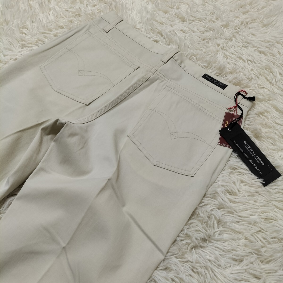 - 美品★BLUE WAY JEANS M096 ブルーウェイ ストレッチパンツ ナイロンコットン オフホワイト LL タグ付き 未使用に近い 日本製 古着 USED