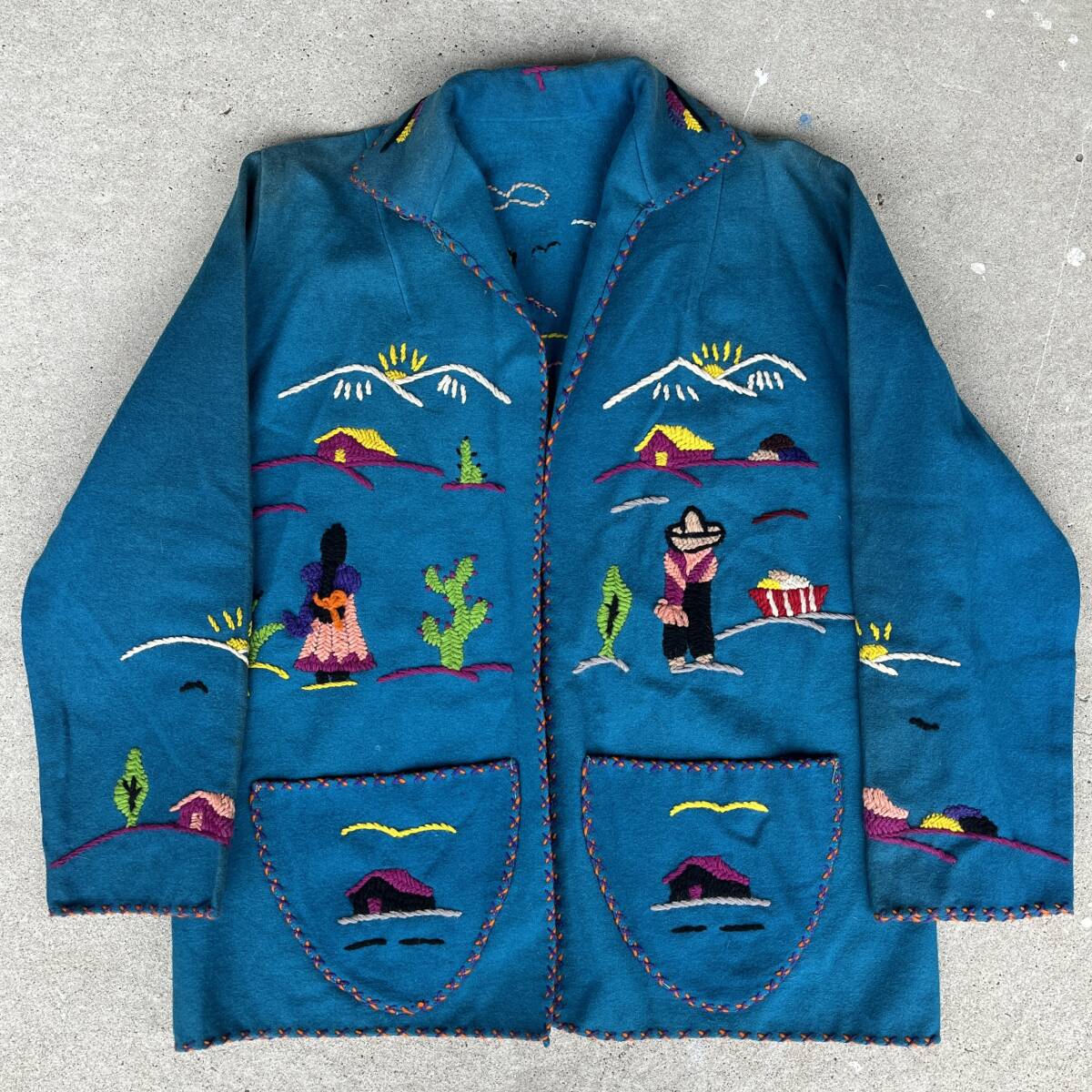 - ビンテージ メキシカン ジャケット ウール ブルー 刺繍 250203