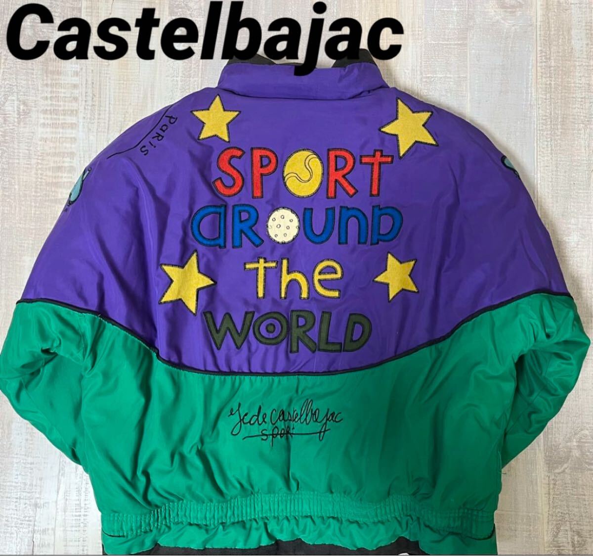 > 【最終値下げ 総刺繍】CASTELBAJAC SPORT 撥水防風 蓄熱保温 総柄 ダウン ジャケット カステルバジャック ブルゾン メンズ ヴィンテージ