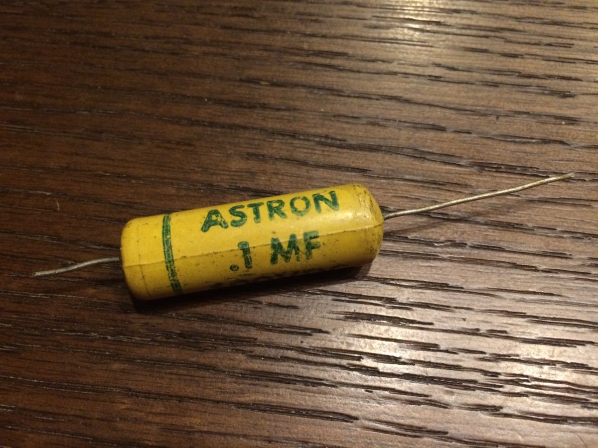 ビンテージAstronコンデンサです。※写真より足が短いです。ギターではシングル、テレキャス等の.1が純正数値のシングルに最適です。その他電子部品向け。Astronコンデンサーはオールドフェンダーアンプ、ギターの純正部品だった事で有名です。----------------------------------------------------------------
