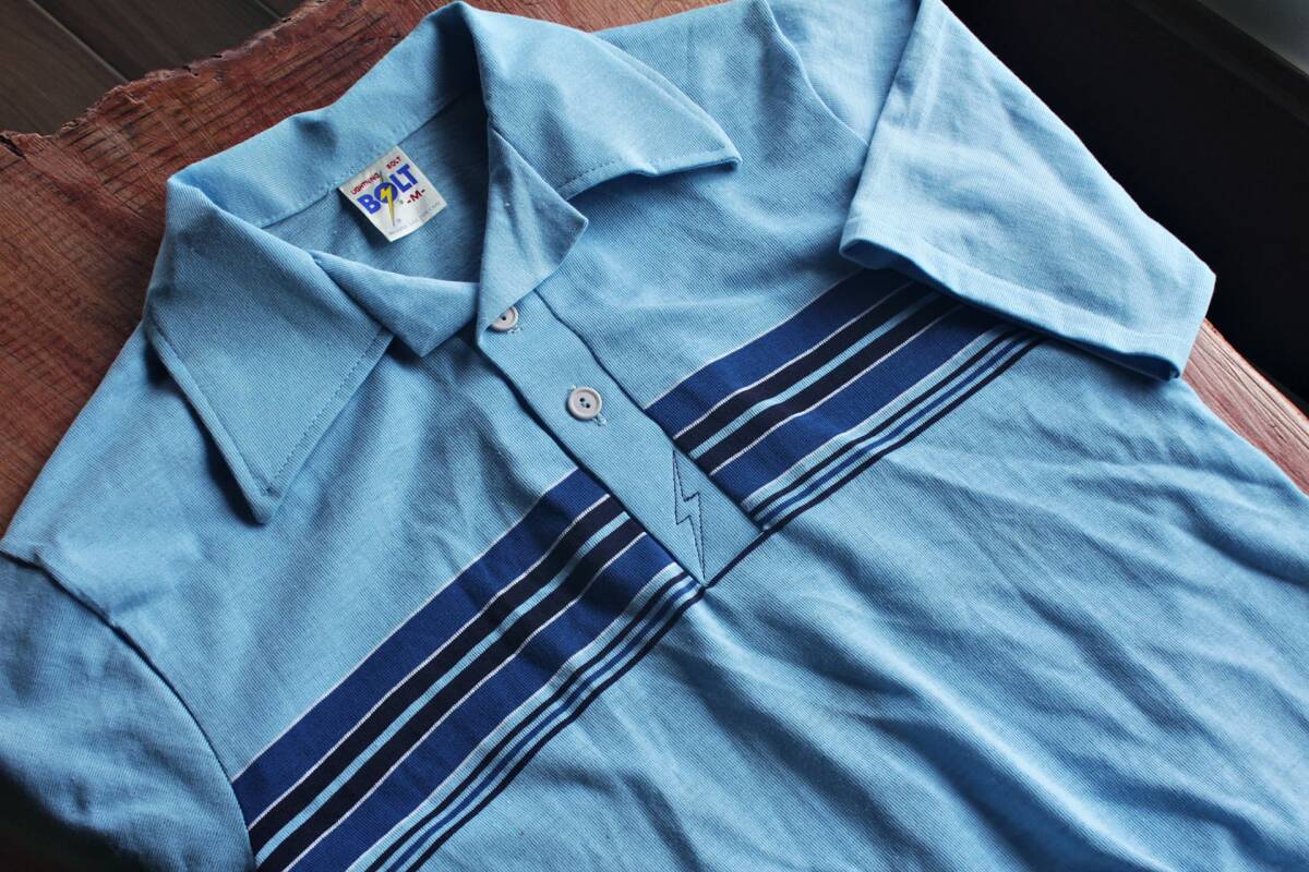 - Lightning Bolt★/ 70sライトニングボルト半袖ポロシャツ新未Mサイズ SA×BL×NV★デッドストック美品