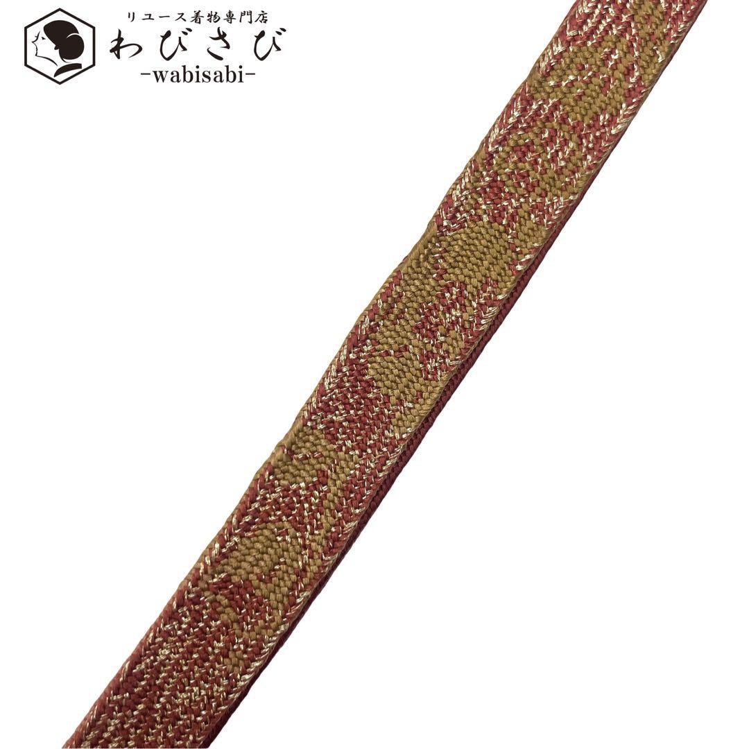 > 和装小物 帯締め 正絹 平組紐 高麗組 組紐 金糸 煉瓦色 C-5479 着物 きもの kimono 和服 和装 中古 リサイクル着物 【送料無料】