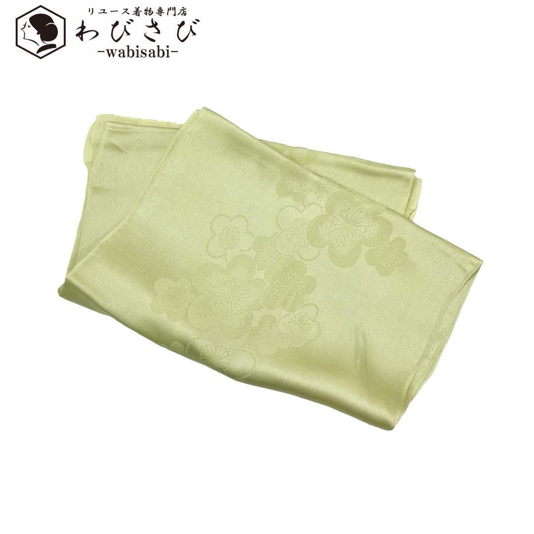 > 和装小物 帯揚げ 正絹 綸子 梅の花模様 苗色 C-5482 着物 きもの kimono 和服 和装 中古 リサイクル着物 【送料無料】