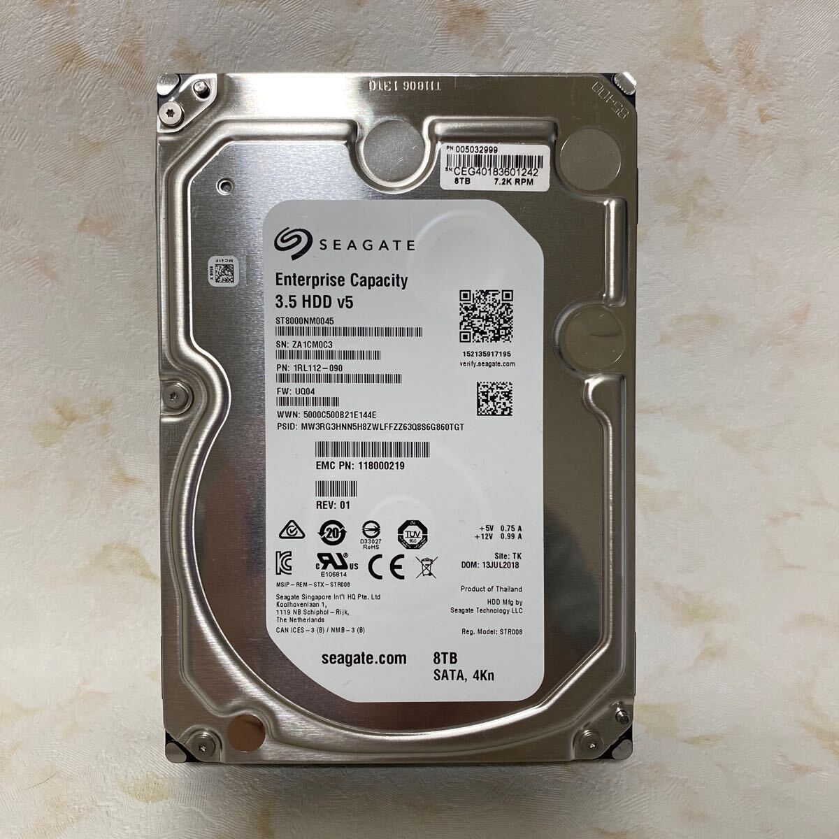 - As【68】SEAGATE Enterprise Capacity HDD v5 SATA 3.5 HDD 8000GB(8TB) 使用時間:52443時間 起動回数:74回 中古動作品 Blancco消去