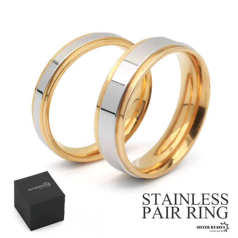 - (メンズ15号、レディース31号) ステンレス ペアリング ゴールド&シルバー 2点セット BOX付き 男性 女性 gold