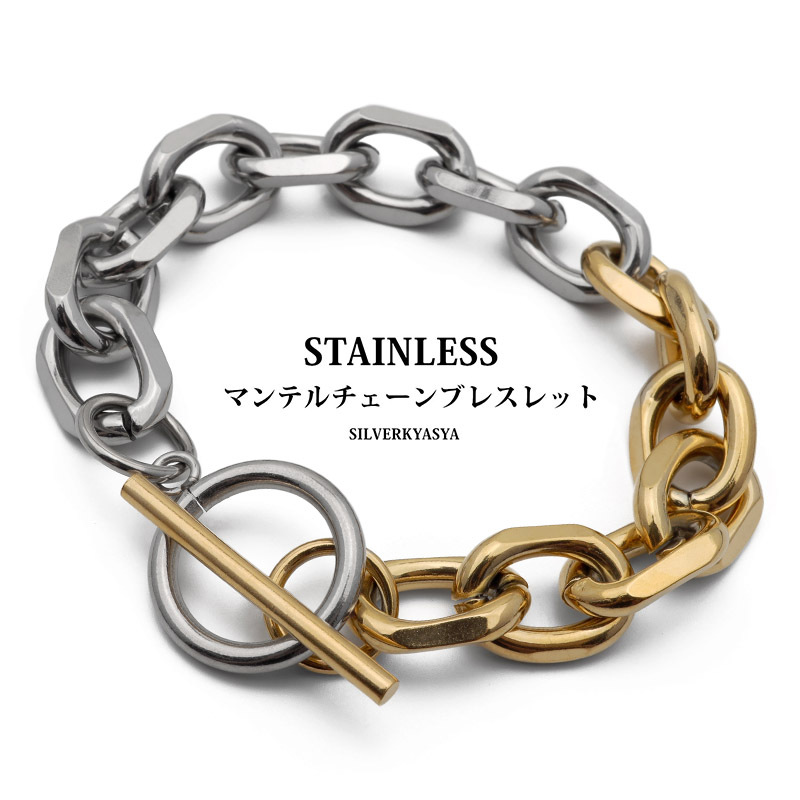 > (21cm) ブレスレット チェーンブレスレット シルバー ゴールド コンビチェーン マンテル ステンレス 18KGP