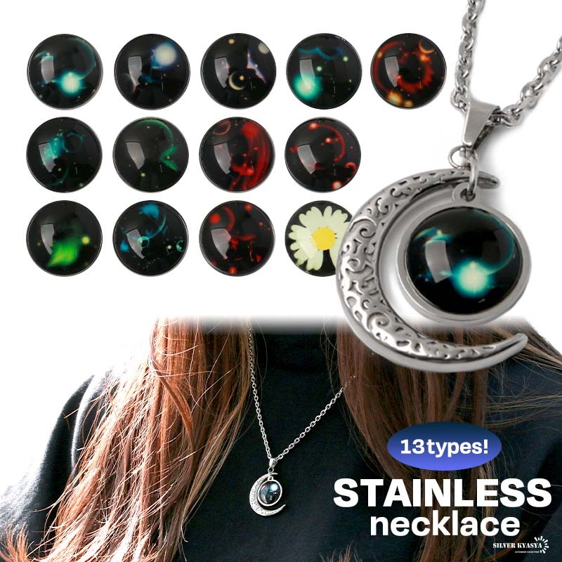 - (Mタイプ) 12星座 ネックレス ステンレス シルバー 月 ムーン 星 スター あずきチェーン ペンダント