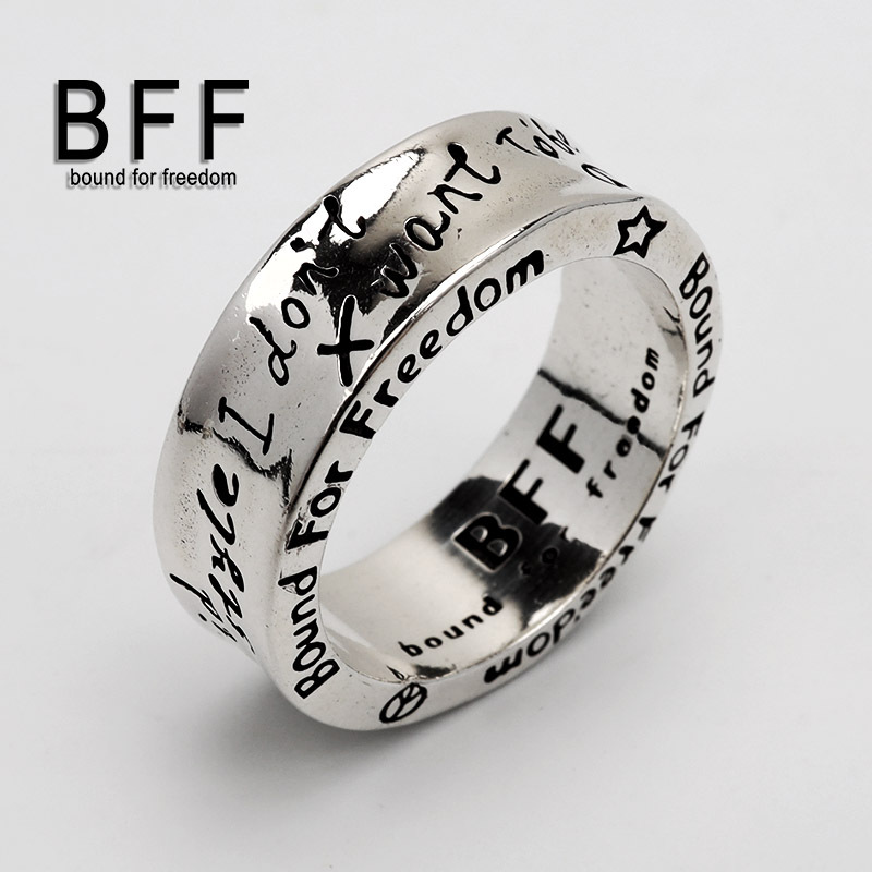 > (25号) BFF ブランド RAKUGAKIリング メンズ シルバー925 彫金 英語 金属アレルギー対応 専用BOX付属