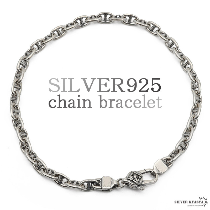 - (21cm) ブレスレット シルバー925 アンカーチェーン チェーンブレスレット 銀 密教法具 金剛杵 刻印 細身 極細