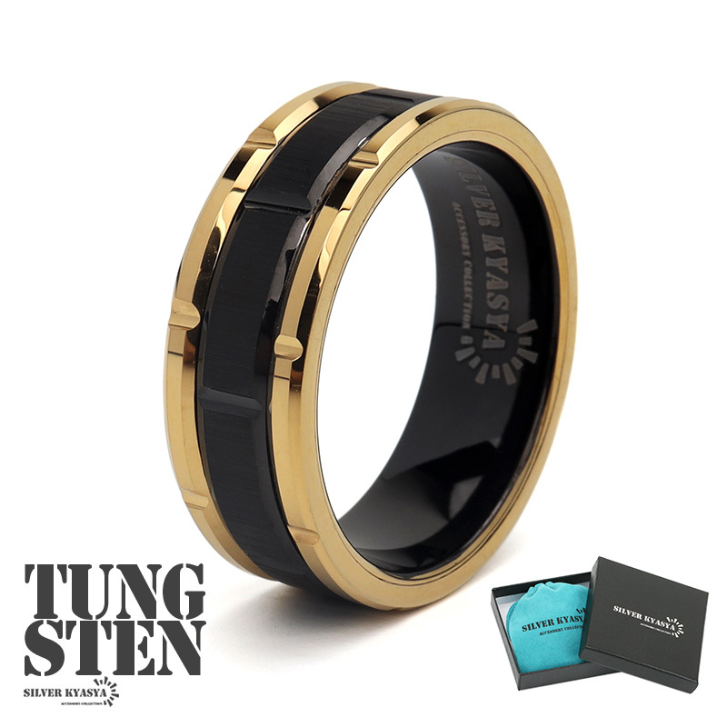 - (29号) タングステン ごつめ リング メンズ ブロックリング 指輪 ゴールド ブラック ハード つけっぱなしOK 専用BOX