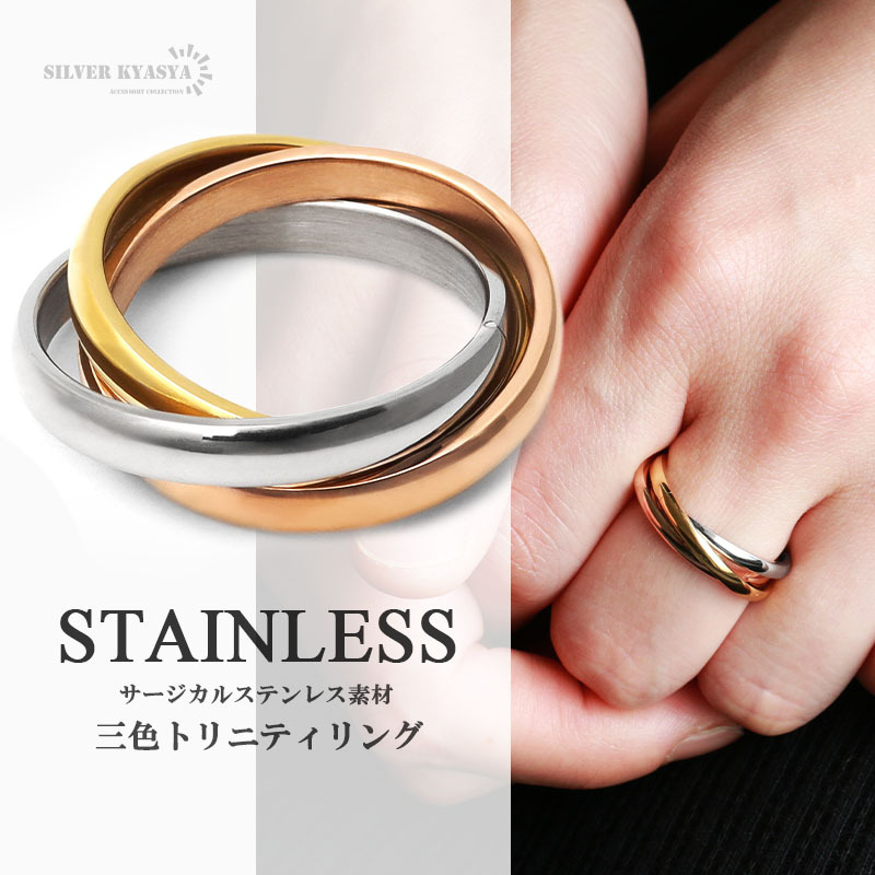 - (17号) ステンレス リング 指輪 トリニティリング 3連 ツイスト ねじれ 多重リング 3色 ゴールド シルバー 男女兼用