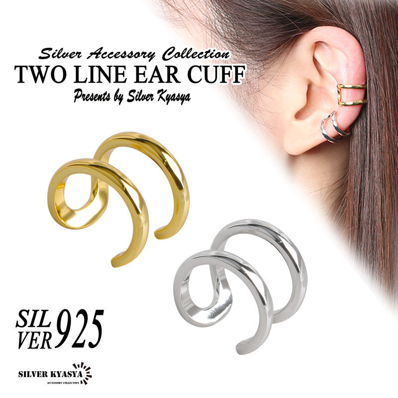 > (シルバー) シルバー925 ツーライン イヤーカフ フープ ピアス gold ゴールド 金色 フェイクピアス 小ぶり 片耳1点