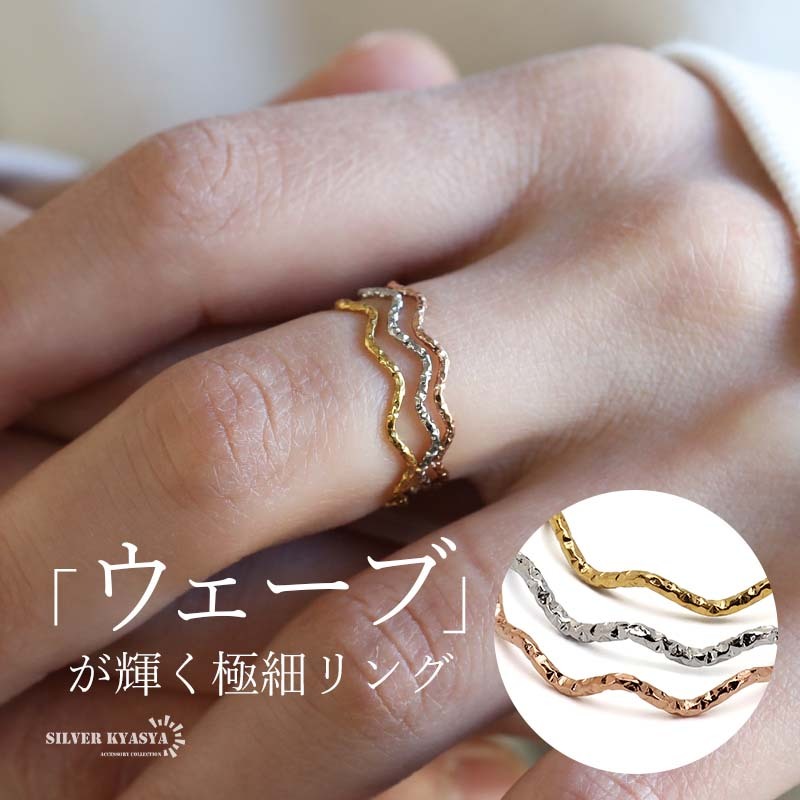 - (ゴールド、22号) 極細 ウェーブリング 波 ゴールド K18 シルバー ステンレス レディース 金属アレルギー対応