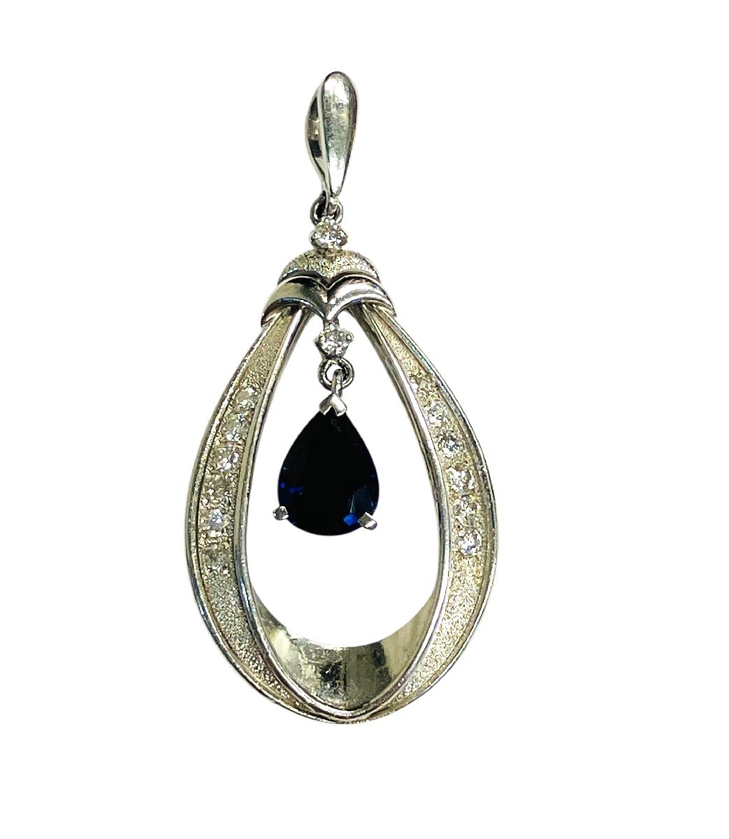 - qoj.YWO02 PT900 プラチナ 天然ブルーサファイア 14Pダイヤモンド ペンダントトップ 中石1.45ct/枠石0.24ct ソーティング付き