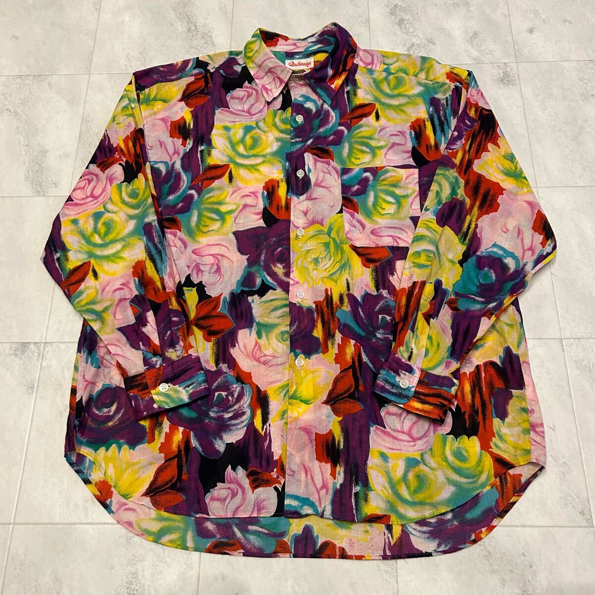 - Pachanga 総柄 柄シャツ 花柄 薔薇 レトロ アート ビンテージ 長袖シャツ 綿100%
