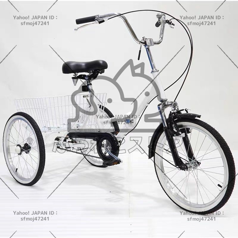 - 特売★品質保証 ホワイト 20インチ 折り畳み式 三輪自転車 人気新品 高齢者用 リ座席高さ調節可能 買い物かご付き 便利 大人用 3輪自転車