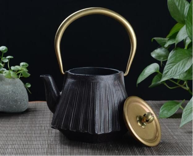 - 老鉄瓶 壺 鉄やかん 鉄分補給 鉄びん 銅製取っ手 1300ml