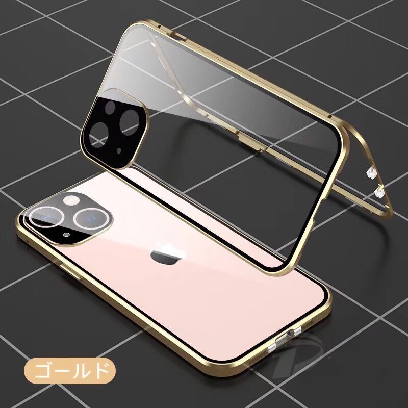 - iPhone 15Plus ゴールド ダブルロック付 強化ガラス レンズカバー体型 アルミ 耐衝撃 iPhone11 12 13 14 15 16 Pro max mini Plus ケース
