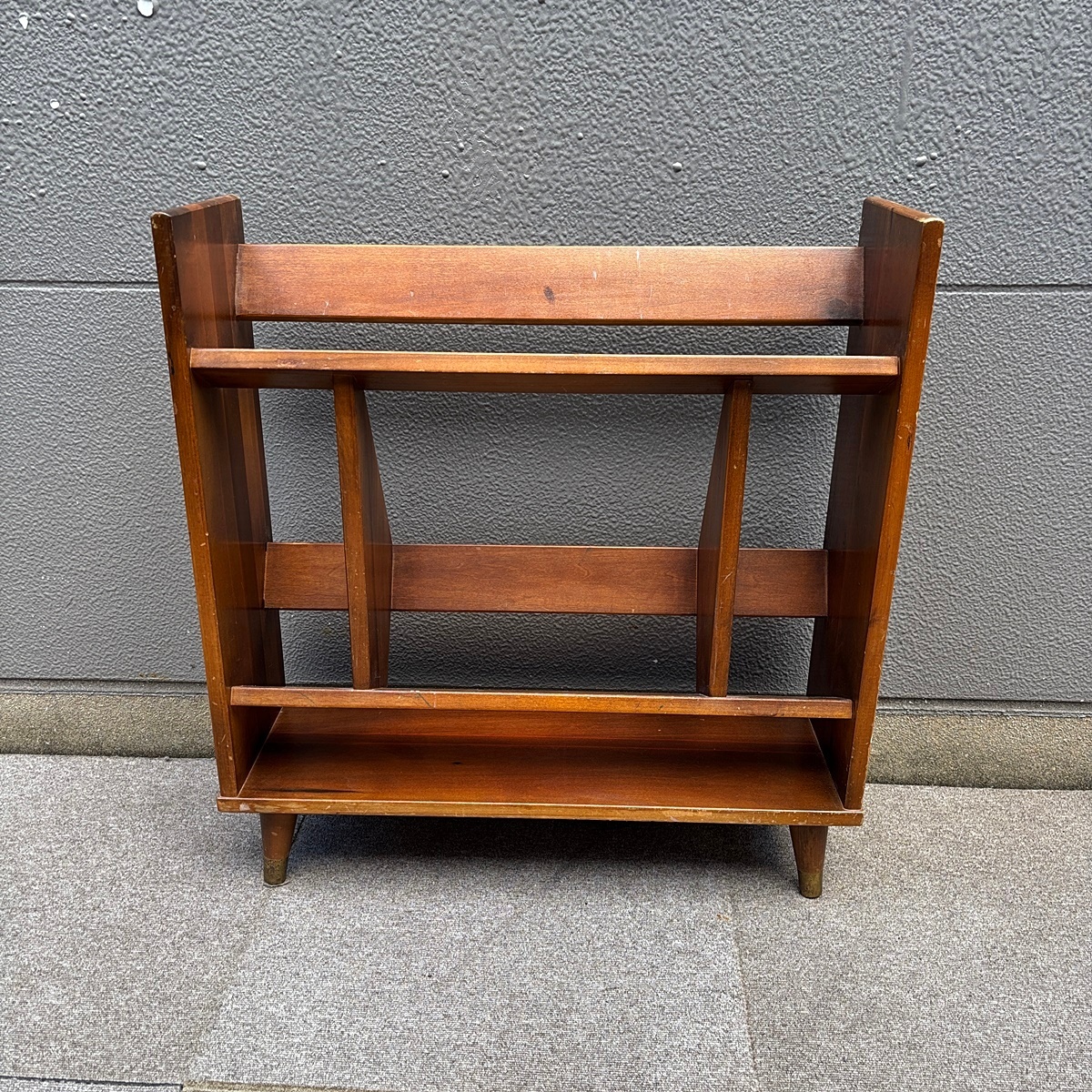 - 【福岡】アメリカヴィンテージ ブックシェルフ ブックケース 棚 本棚 マガジンラック 脚付 木製 ミッドセンチュリー モダン【KK1223-4】