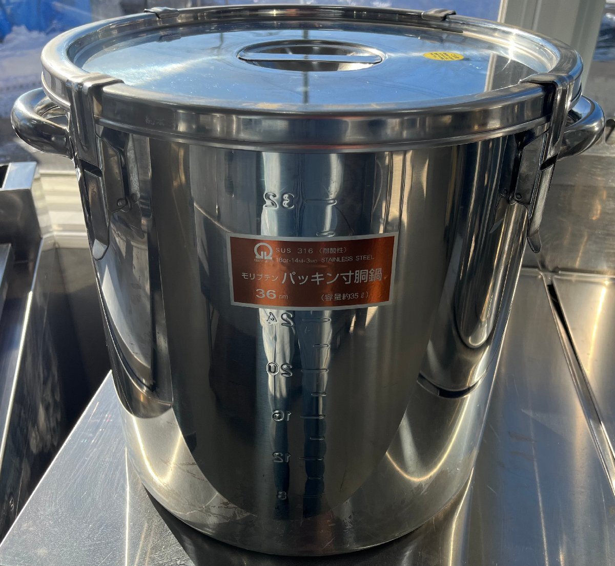- 残2点・モリブデン・耐酸性・目盛り付き・パッキン寸胴鍋・36㎝・35L・ラーメン・蕎麦・叉焼・ずんどう・スープ鍋・中古・北海道より発送