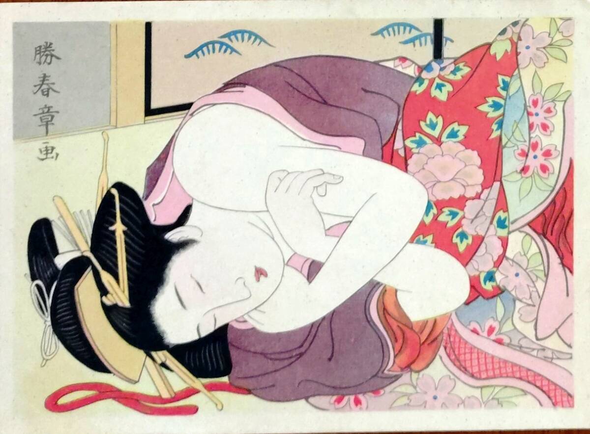- f25020718〇一枚摺物 B6サイズ 彩色木版画 浮世絵 機械摺 勝春章 昭和初期〇和本古書古文書