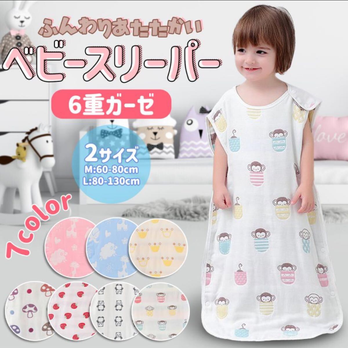 - ベビー スリーパー 赤ちゃん キッズ 6重ガーゼ コットン 冬用 通年 布団 30