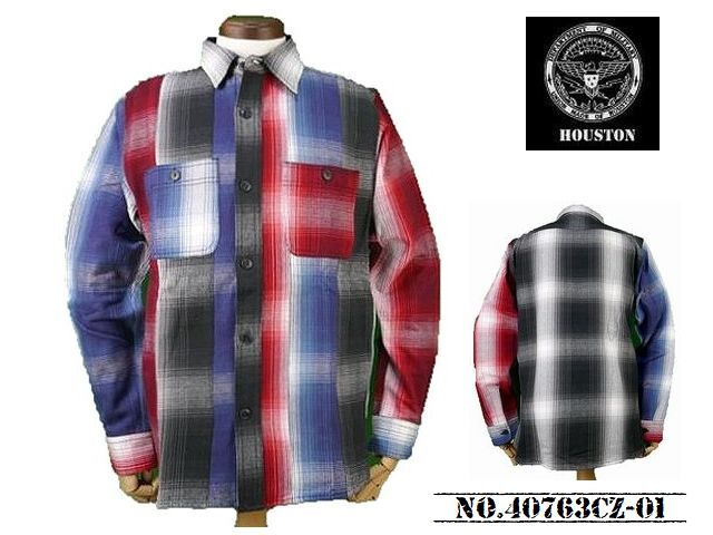 > 【送料無料 38%OFF】HOUSTON ヒューストン ヘビービエラ OMBRE CHECK クレイジーパターン WORKシャツ NO.40763CZ 01_Lサイズ(汚有)