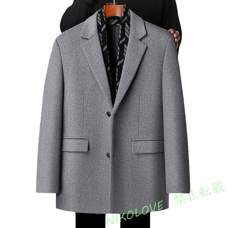 > ☆新品ウールコート カシミヤ インナーダウン付き 手作り 厚手 ビジネスコート ロングコート チェスターコート スーツ グレー M LK349