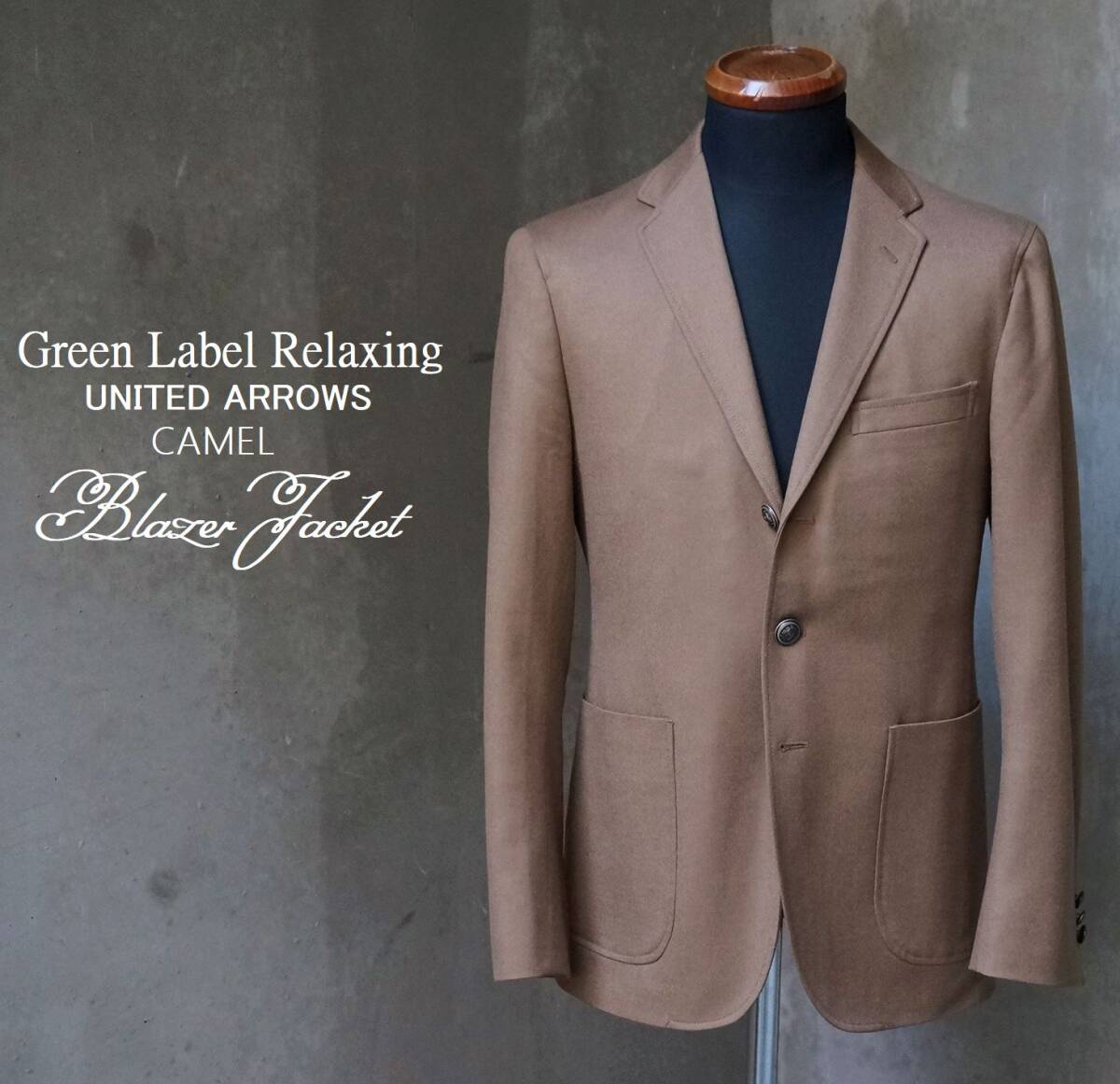 - 美品 UA ユナイテッドアローズ GLR グリーンレーベルリラクシング キャメル フラノウール 銀ボタン ブレザー テーラードジャケット S