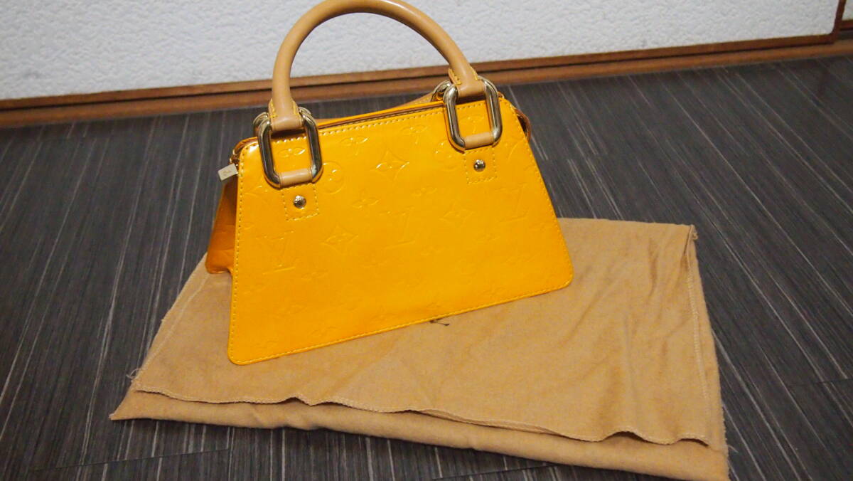 > ヴィトン VUITTON ミニフォーサイス ハンドバッグ ヴェルニモノグラム イエロー