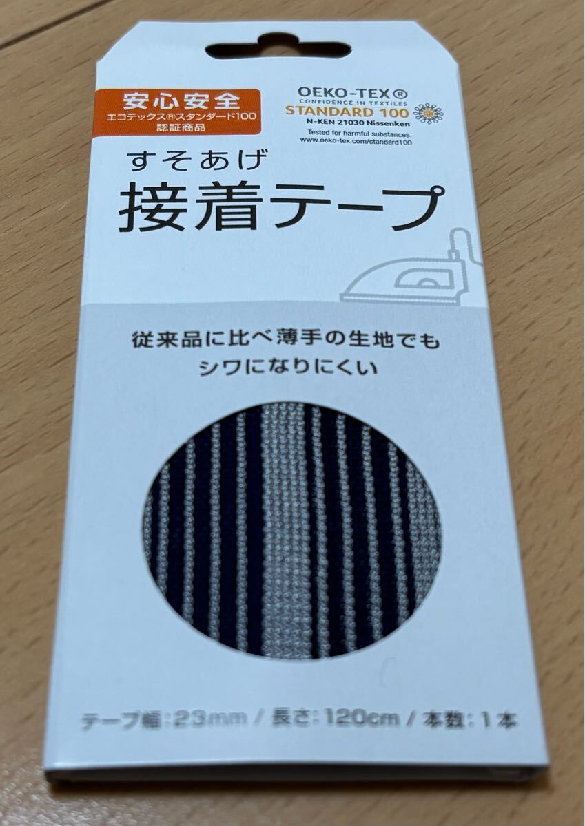 - 【新品未使用】すそあげ 接着テープ ネイビー (幅23mm、長さ120cm、本数1本) シワになりにくい アイロン ミシン不要