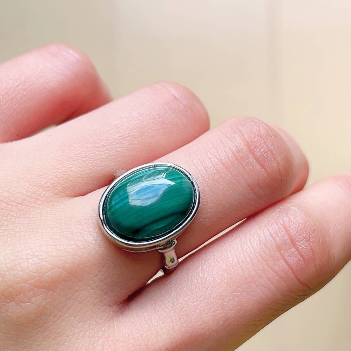 - ◇マラカイト◇指輪◇リング◇フリーサイズ◇天然石◇パワーストーン◇巾着袋付き◇プレゼントにも 031R291