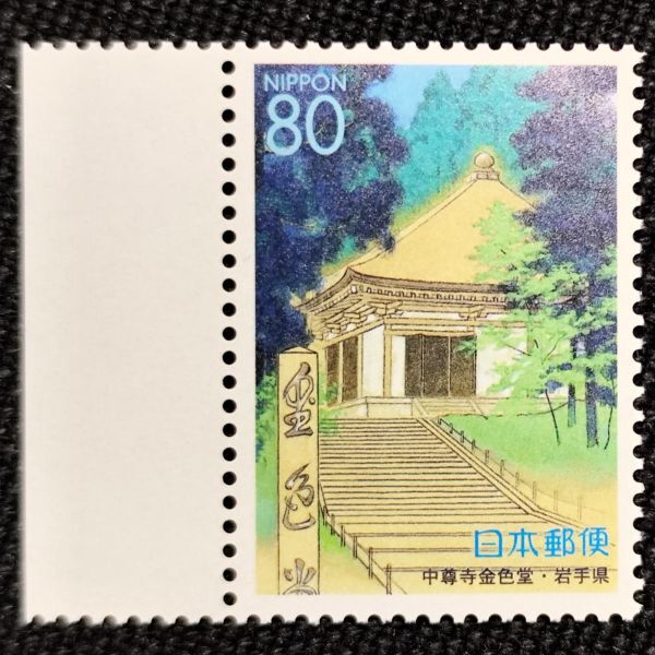 - [25020908] ふるさと切手【岩手県・中尊寺金色堂】単片 国宝「金色堂の覆堂の外観」80円 2000年発行 美品