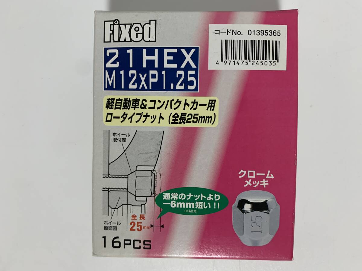 > fixed ホイールナット 袋ナットメッキ ロータイプ(全長25mm) M12XP1.25 21HEX 16PCS 新品
