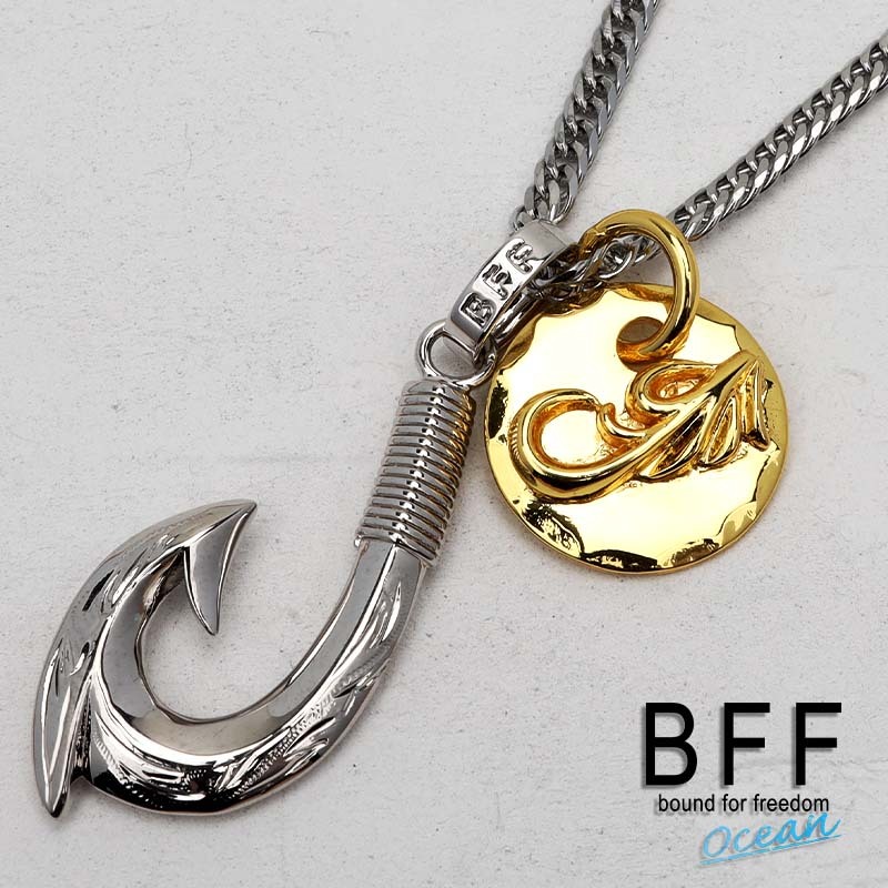 - BFF ブランド フィッシュフックネックレス ダブル喜平 6面カット 釣り針 ステンレス 銀色 シルバー 専用BOX