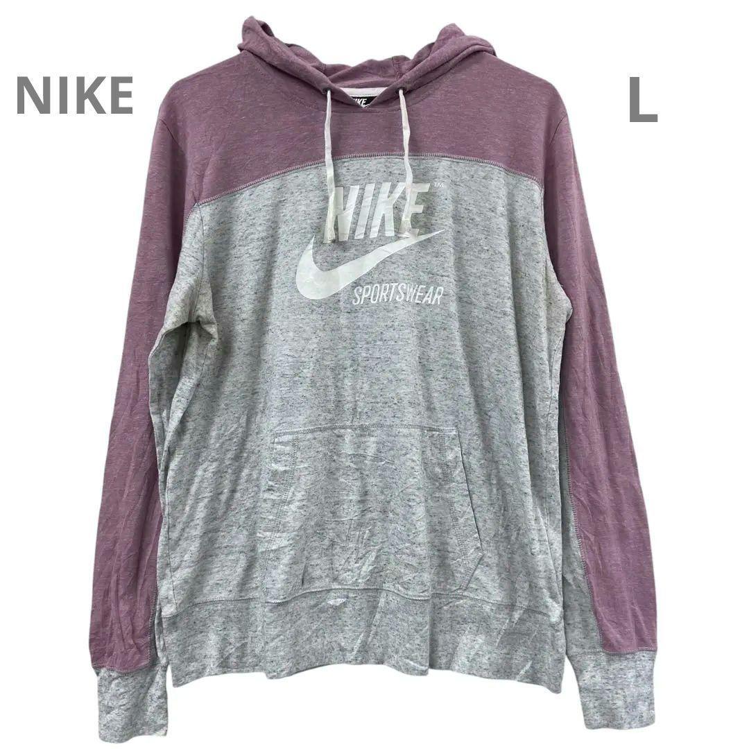 - ナイキ レディース パーカー L 薄手 プリントロゴ プルオーバー【824】