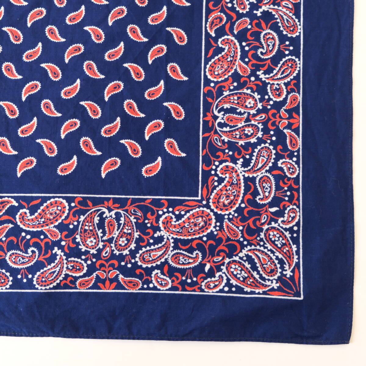 - デッドストック【 ヨーロッパ ビンテージ 】コットン ペイズリー 柄 バンダナ / ネイビーレッドホワイト 紺赤白系 / フランス ワーク