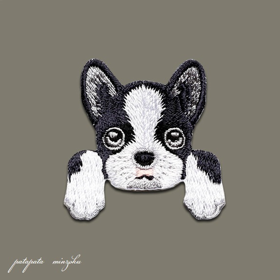 - ボストンテリア 刺繍 アイロン ワッペン アップリケ 犬 子犬 雑貨 パタミン ハンドメイド