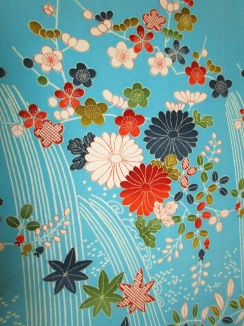 - E-82★水色*菊*紅葉*萩*正絹*古布はぎれ★文化人形/一閑張り/吊るし雛/市松人形アンティーク/ちりめん細工