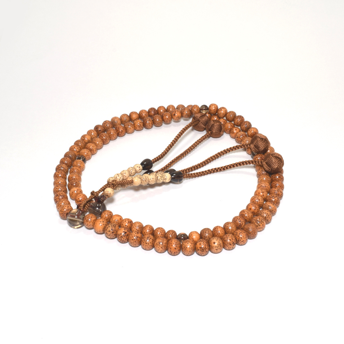 - 真言宗 お念珠 古色 星月菩提樹 茶水晶仕立 念珠 数珠 (房色:茶) スモーキークォーツ 【ss1-2-9】