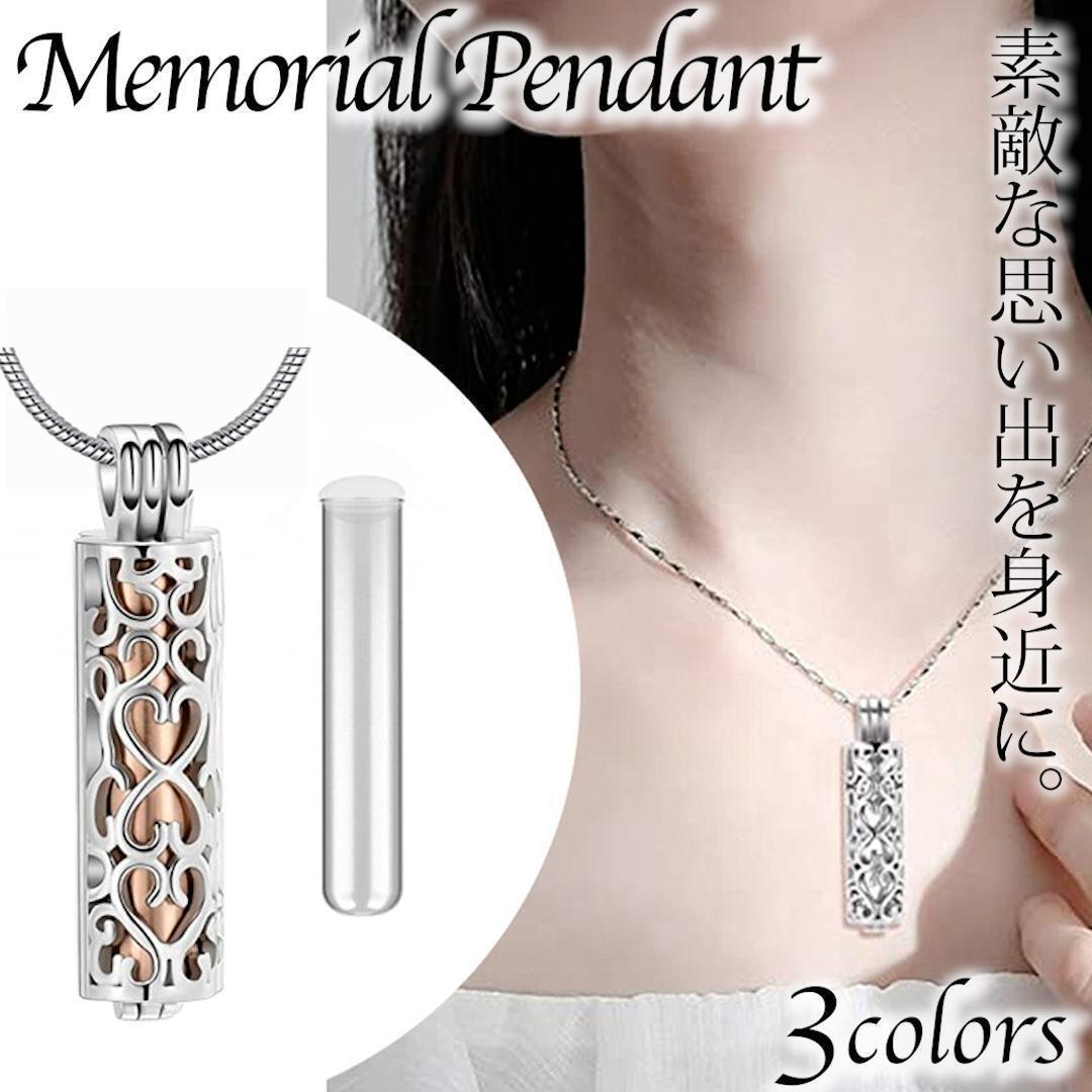 - 遺骨ペンダント シルバー イエロー ハート柄モチーフ メモリアルペンダント