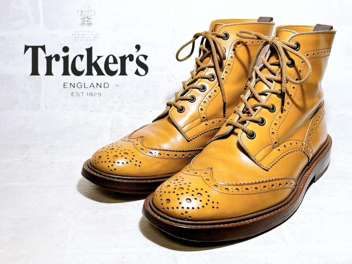 > イギリス製【美品】Tricker's トリッカーズ 高級 カントリーブーツ ライトブラウン UK8.5-5(約27cm)メンズ 英国製高級靴