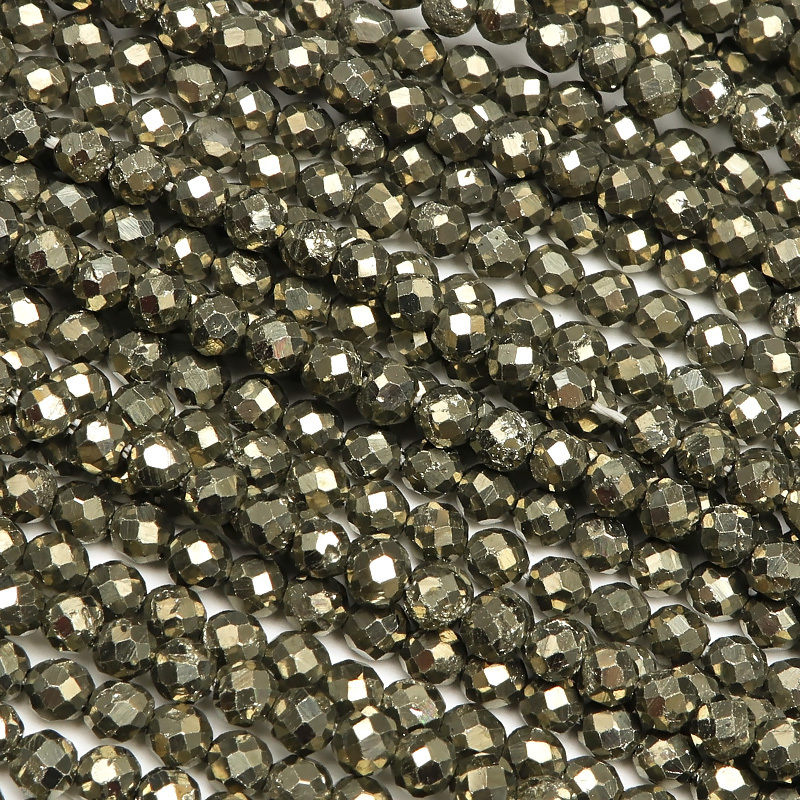 - ゴールデンパイライト 面カット 丸玉 3mm[プレミアムカット]【1連販売】 / 7-13 PA3MC
