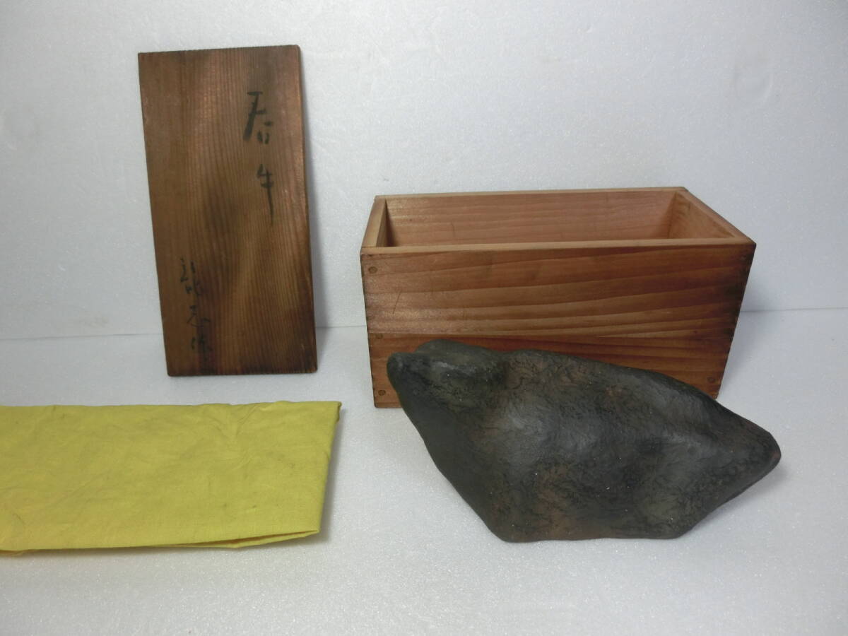 - 古い 昭和 龍志 作 焼物 置物 呑牛 どんぎゅう 牛 うし ビンテージ 元箱