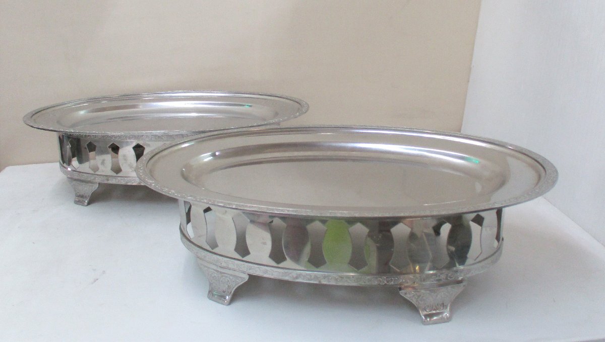 > モンテリー 小判皿 + 飾台 18インチ 2組セット 46.5x31.6x13cm ビュッフェスタイル 18-8ステンレス バイキング 中古 90343 ★