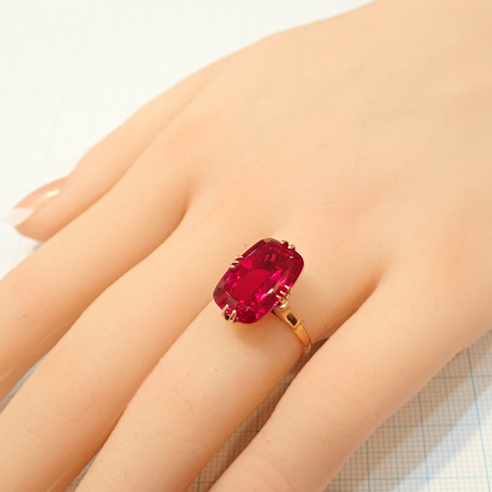 - ■K18 合成ルビーリング■穴透かし 透かし模様 割り爪■ビビッドレッドカラー■アンティーク 昭和レトロ■指輪■中古磨き仕上げ■